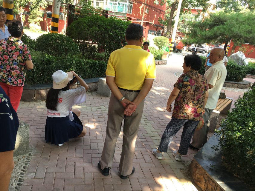 上午8点半,“拂煦坊”实践队二组成员在校门口集合,出发前往济南七东社区。抵达目的地后,实践队首先与社区居委会王主任进行了交流,在交谈中,实践队成员初步了解了七东社区内老人的生活状况,随后负责人小杨带领团队成员与数十对金婚老人们见面。简单介绍过后,实践队开始了本次采访,采访中,成员们了解到社区大多数老人的儿女白天很少在家,因为工作繁忙,陪伴老人的时间并不多,但还好社区文化建设相对完善,所以老人们可以走出家门,在社区居委会小广场聊天打发时间。采访过后,实践队成员钟杭航和马庆晓继续陪其他老人聊天,成员李梦晨则为他们拍照留念。9点半左右,所有照片拍摄完毕,队员们向老人展示刚刚拍摄的照片,老人们对成员们表示高度的赞赏。随后,在居委会一楼大厅内,金婚老人们给队员们讲述他们年轻时的故事,共同怀念他们的青春,老人们时不时地发出爽朗的笑声,实践队成员们也被老人们的深情所感动。最后,队员们为所有的老人拍摄了一张合影,并和他们道别。下午两点半左右,队员们再次前往七东社区将洗好的照片交给王主任,王主任向队员们的付出表示感谢。