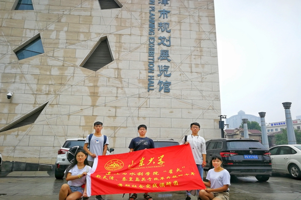 在参观后,队员们采访了展览馆的刘新玲讲解员,队员们了解到,近年来,天津市在市域规划的空间引导下,产业平台规划建设取得较大进展,一批功能板块实现规划落地,中心城区逐步由粗放型外延式扩张向做精做细的内涵式提升转型,市域交通规划建设稳步推进,设施网络初步形成,中心城区交通设施规划实施不断优化,公共服务得以强化,城市承载能力有所提升,通过她的介绍,队员们对天津市近年来的规划和建设有了较为广泛的了解。