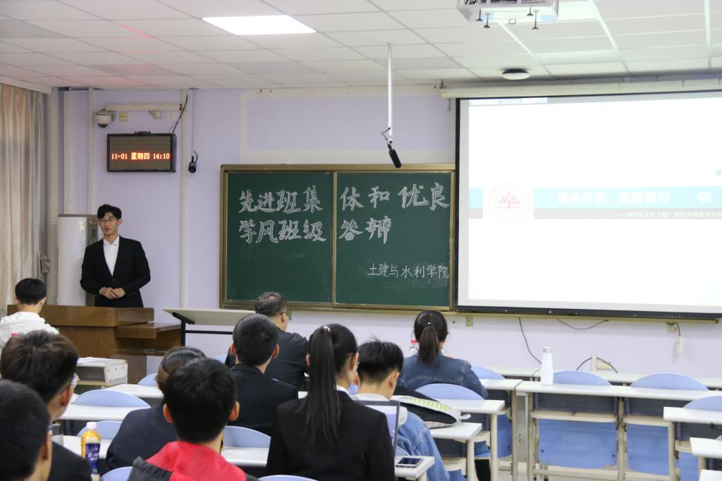 下午2点,答辩会正式开始,共有来自5个年级的19个班级进行答辩。各个班级代表主要从班级概况、学风建设、班级活动、所获荣誉和未来展望等方面进行了答辩,以图文结合、多人答辩等不同的形式介绍了班级的情况,主题各异,风格具佳,充分展现出班集体的优良学风和丰富日常。其中,14级建筑班代表以摄影展的形式,对班级的课程学习、外出实习、社会实践等情况进行了详细介绍,向在场观众展示了班级的个性风采,之后他以脚踏实地、相信自己八个字结束了本次答辩,赢得在场观众的阵阵掌声。15级土木一班的答辩人则以继承传统、砥砺前行为主题,从班级思想建设、科创比赛等方面进行了介绍。18级的各个班级还展示了目前仍在进行的手拉手志愿服务情况,并以图片形式介绍了班级项目的组织过程和初步成果。答辩结束后,梁莹针对答辩着装、时间把握、答辩特色等问题进行了点评指导,令在场同学受益匪浅。至此,Beat365官方网站举办的先进班集体和优良学风班级答辩会圆满结束。
