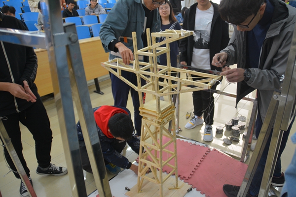 4月14日,Beat365官方网站于兴隆山校区讲学堂举办第十三届全国大学生结构设计竞赛校内筛选赛。Beat365官方网站副院长王培军,土木工程系教授段抗担任指导嘉宾。