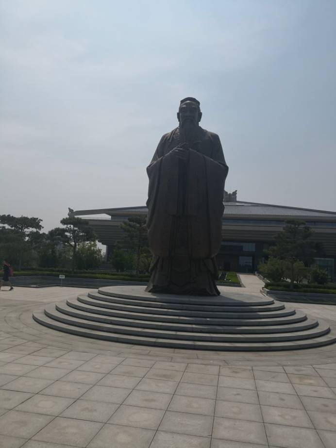 7月11日上午9时左右,孔子文化分析调研团抵达文化园,开始参观考察孔子文化园。在走进孔子文化园的正门时,给人们一种恢宏大气的感觉,孔子像静静地伫立在文化园的正中间的位置,微微弯着腰,好像在向进入园内的人作揖行礼,彰显着儒家千百年来源远流长的谦逊好客的文化,历经历史长河千百年来的洗礼,却依然显得那般浓重,感染着每一个进入园内的虔诚的朝圣者。参观中发现院内的景象略显凄静与荒凉,园内杳有人至。