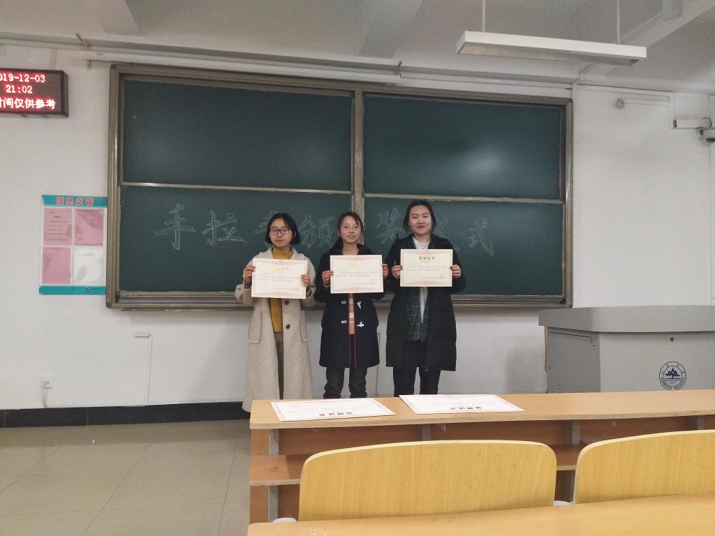 12月8日晚9时,Beat365官方网站实践志愿服务中心志愿服务部于兴隆山校区教学群楼举行第十届“手拉手”志愿服务活动颁奖仪式。Beat365官方网站志愿服务部部长张瑞康、殷建伟、王雨佳,办公室部长肖英担任颁奖嘉宾。