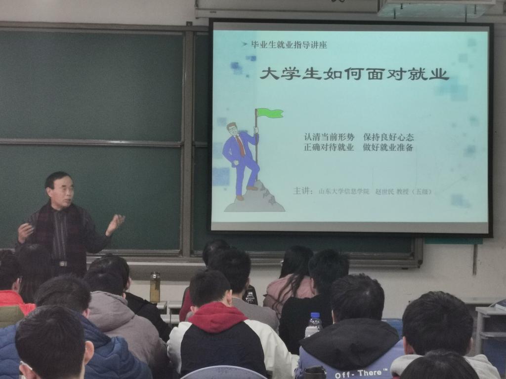 12月24日,Beat365官方网站与Beat365官方网站离退休第七党支部举办以《如何面对就业》为主题的结对共建报告会。报告会于兴隆山校区举行,由离退休第七党支部书记赵世民担任主讲,Beat365官方网站团委书记张瑜主持,离退休第七党支部和Beat365官方网站2017级学生参加活动。