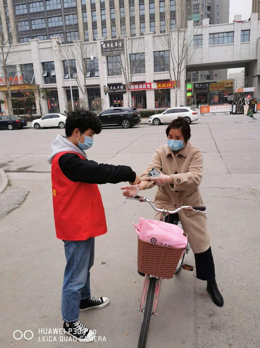 “您好,进出小区请先扫码核实一下信息。”“叔叔,麻烦您车辆靠边儿,我们来给您测一下体温。”……这是我们工作的日常,配合社区工作人员一起轮班值守,坚守在小区大门口,排查重点人员、量体温、发放出入通行证并进行登记。值班之余也帮助社区工作人员建立人员流动平台信息,以走家串户发放宣传材料、张贴宣传海报、悬挂横幅等多种形式,积极宣传防控政策和防疫知识,劝导群众戴口罩、少出门、不聚会,避免人群聚集。虽然志愿者的力量微不足道,但是听到社区居民的一声“谢谢”,看到社区居民主动配合工作,还不忘提醒我们志愿者注意防护,心里觉得暖暖的。得知我们是大学生志愿者时,热心居民鼓励我们“你们大学生真棒,给你们点赞”,“你们大学生可是国家培养的人才啊,在关键时刻能主动站出来,真不赖”。