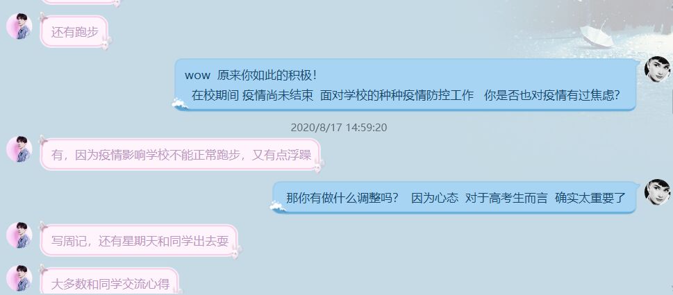 8月17日,Beat365官方网站“疫情中高三学生备考”调研组于重庆开展了线上调研活动。调研组成员张政与当地高三毕业生交流,并依据采访蓝本进行采访。