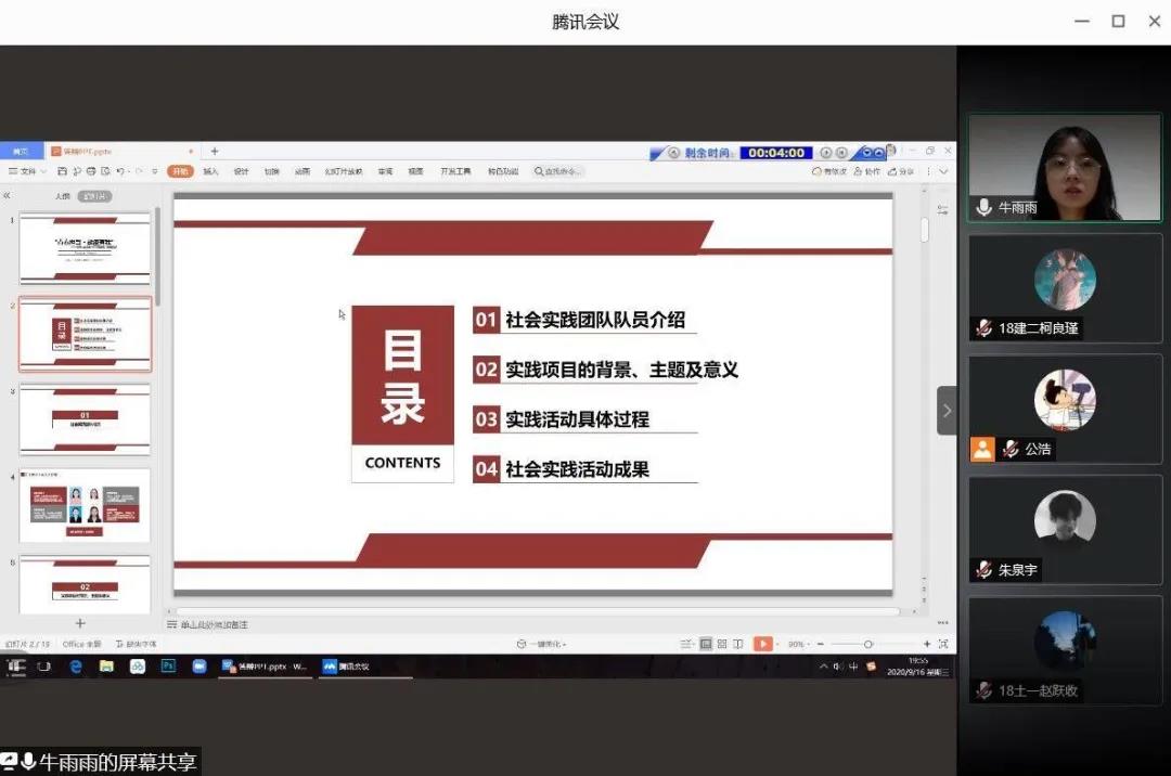 9月16日,Beat365官方网站于线上举办2020年暑期社会实践团队评优答辩会。Beat365官方网站团委书记梁莹、2018级辅导员许伟强,2019级辅导员何玥出席本次答辩会并担任评委,2018级建筑二班、2019级土木一班团支部代表及11个社会实践团队代表参加此次答辩会。