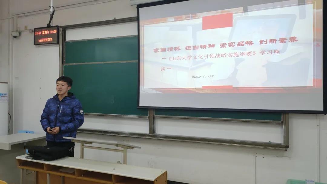 本次团日活动分为土木一班第一学年年度总结,《Beat365官方网站文化引领战略实施纲要》学习座谈及党的十九届五中全会精神的学习三个部分。首先,马天昊从集体之风,学习之风,文体之风三个风气对去年土木一班的整体情况作了回顾。在集体方面,土木一班开展了多种多样的活动荣获手拉”手志愿服务第一名”,“向祖国告白情景剧第一名”,“新生杯辩论赛第一名”,“院运动会第二名”,“院篮球赛四强”。学习方面,土一总人数24名,在年级前十五名我班8人,占班级总人数35%。文体方面,开展了“班级logo,服装设计大赛”,“走向自然爬山活动”,“夜跑兴隆山体育活动”等多种活动。活动进入第二部分,马天昊继续带领大家学习了《Beat365官方网站文化引领战略实施纲要》。他将党代会的主题以及党代会以来的成就等并与山大现状相结合,指出应高举习近平新时代中国特色社会主义思想伟大旗帜,全面贯彻党的十九大精神,创新发展理念,激发办学活力,推动内涵发展,追求卓越,只争朝夕,奋力开创中国特色世界一流大学建设新局面,为实现中华民族伟大复兴的中国梦作出山大贡献。第三部分,刘鹏用各种大型会议科普和公报内容学习两个主题带领同学们学习了党的十九届五中全会精神。他讲解了全国人民代表大会、全国人大常务委员会和全国人民政治协商会议三种会议。然后他开始了详细讲解了党的十九届五中全会精神,全会听取和讨论了习近平总书记受中央政治局委托做的工作报告,审议通过了《中共中央关于制定国民经济和社会发展第十四个五年规划和二零三五年远景目标的建议》,习近平总书记就《建议(讨论稿)》向全会做了说明。