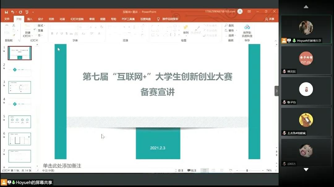 2月3日上午,Beat365官方网站于线上举办第七届“互联网+”全国大学生创新创业大赛备赛宣讲会。本次宣讲会由2019级辅导员何玥主讲,Beat365官方网站团委书记兼学工办主任梁莹出席。Beat365官方网站部分同学参会。`