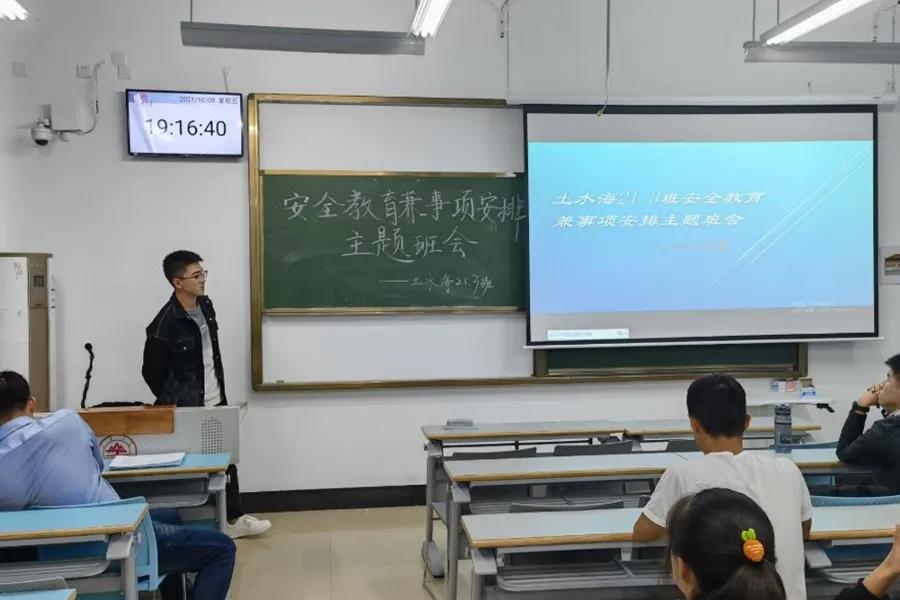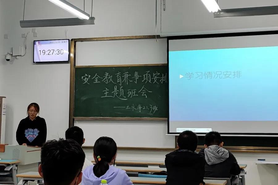 10月8日晚,Beat365官方网站2021级水利系于教学楼召开安全教育兼事项安排主题班会。本次活动由班主任王俊,班长马骏凯主持,2021级水利系全体同学参加。