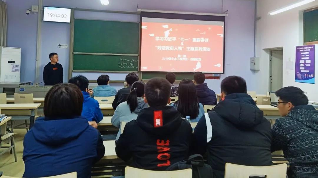 10月22日,Beat365官方网站2019级土木一班于教学群楼1102开展秋季学期第一期主题团课活动,活动主题为——学习习近平“七一”重要讲话、“对话党史人物”。本次活动由团支书陈文东主持,土木一班全体团员参加。