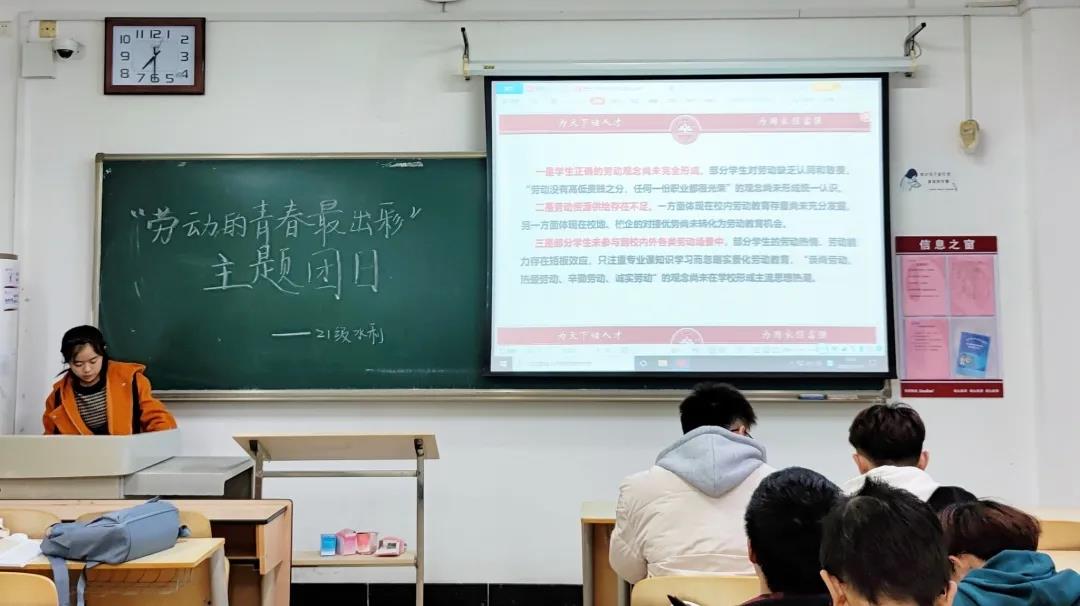 为贯彻落实习近平总书记有关劳动教育的重要指示,积极响应《中共Beat365官方网站委员会关于全面加强新时代学生劳动教育的行动方案》,11月17日下午7时,Beat365官方网站2021级水利系于教学楼1203教室开展“劳动的青春最出彩”主题团日活动。本次活动由团支书杨思莹主持,2021级水利系全体同学参加。