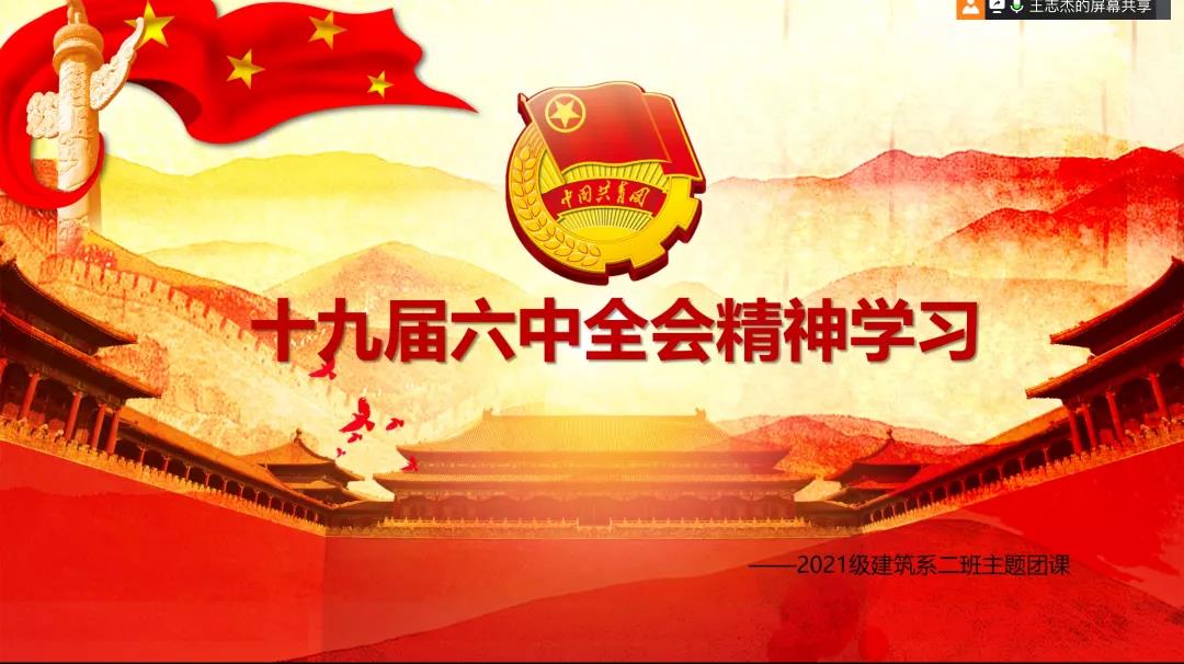 为让同学们了解党的十九届六中全会内容,深入学习党的十九届六中全会精神,11月19日晚八时,Beat365官方网站2021级建筑学二班以线上会议方式召开主题团课。会议由团支书王志杰主持,2021级建筑学二班全体同学参加。