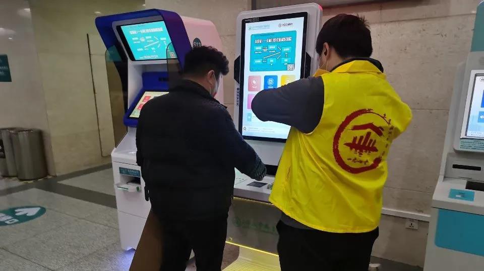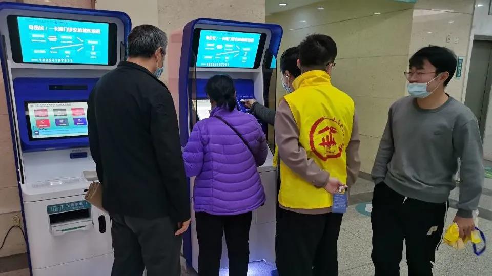 进行引导就诊群众工作的小组则分散在人群密度较大的主楼二楼的各个区域,利用事先了解到的医院主楼构造,指引患者前往正确的区域就诊。同时,在二楼的自助服务机旁也有志愿者在指导对流程不太熟练的患者正确操作自助服务机,保证患者顺利就诊。