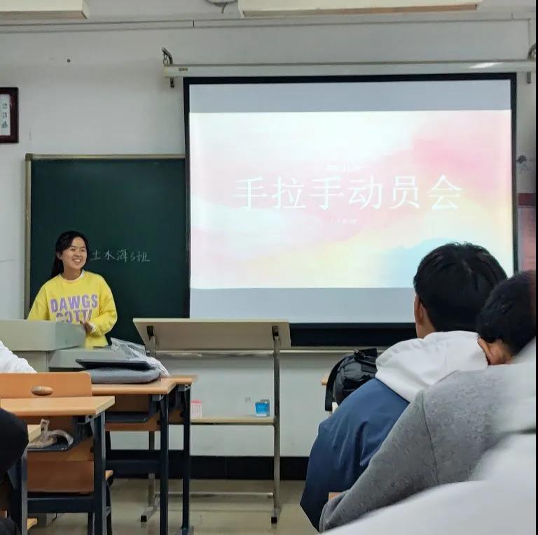 11月19日晚7时,Beat365官方网站2021级水利系于1501教室开展班级手拉手志愿活动动员会。本次活动由团支书杨思莹主持,2021级水利系全体同学参加。