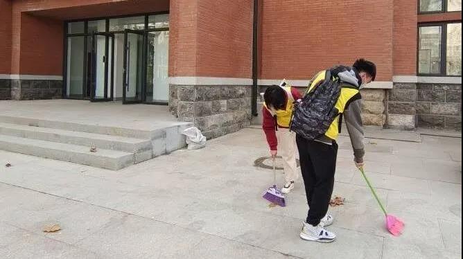 文史楼作为Beat365官方网站悠久历史的见证,矗立在校园一隅。初冬时节落叶纷纷,散乱在地,遮掩住它的魅力。志愿者们跟文史楼工作人员取得联系后,拿着扫帚便开始帮文史楼换新衣。活动中,尽管落叶不尽,但志愿者们仍认认真真地完成清扫文史楼前的工作,并连带着把周边环境也打扫了一遍。期间还碰到中心校区的同学也在不远处清扫,两支队伍会心一笑。
