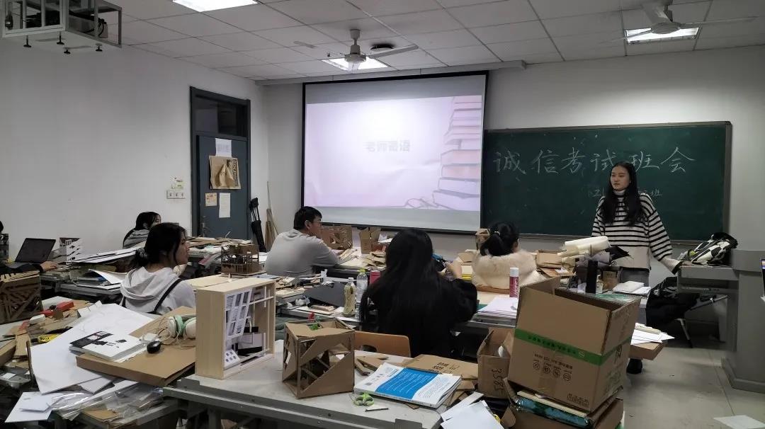 12月17日下午5时,2021级建筑系一班于兴隆山校区实验楼522教室召开考试诚信教育班会。班长洪瑜主持,班主任沈中健老师出席,班级全体同学参加。洪瑜为同学们宣读了Beat365官方网站本科生考试守则,讲解了考试流程以及注意事项,并强调应坚决诚信应考。沈中健老师对本次会议做了总结,再次强调诚信应考的重要性,并希望同学们认真复习,积极备考。