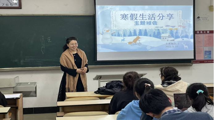为加强同学们之间的交流,丰富同学们的业余生活,3月10日,2021级土木一班于教学楼开展了寒假生活分享主题班会,班主任刘玉萍主持,2021级土木一班全体同学参加。班会分为假期生活分享和教师总结两部分。会后,刘玉萍鼓励大家在新学期继续努力,取得更好的成绩。