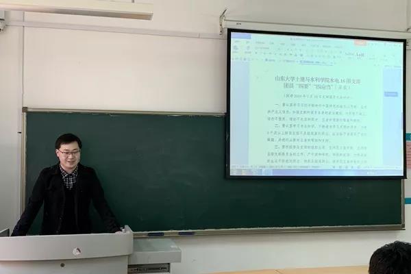 3月18日,Beat365官方网站16级水利水电班于兴隆山校区教学群楼召开团支部大会,团支书刘胜琪主持本次会议,水利水电班全体同学参加了团会。