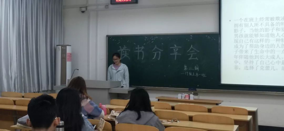 17土木一班第三期读书分享会作分享的七名同学都用精美的PPT详细介绍了书籍内容,同时充分抒发了个人的读书心得,在场同学认真聆听,偶尔也会产生共鸣。此次活动的开展有利于班级形成浓厚的思想交流氛围,与此同时,活动开展前两天,正是第24个世界读书日,这为鼓励大家多去阅读提供了良好的契机。