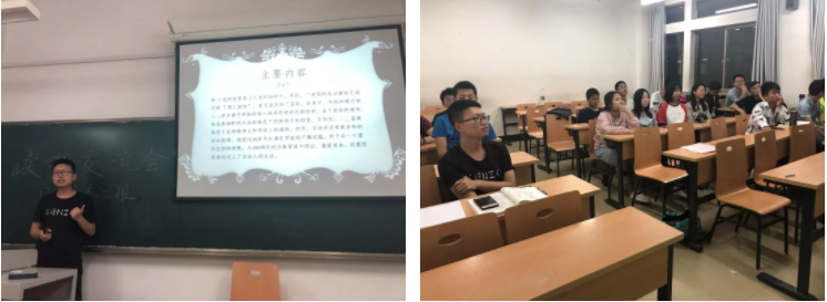 本次读书分享会上,四名同学结合PPT和图文展示等多种形式,详细介绍了书籍内容,分享了个人的读书心得,在场同学认真聆听,受益匪浅。此次活动的开展有利于班级形成浓厚的思想交流氛围,增强了班级凝聚力。