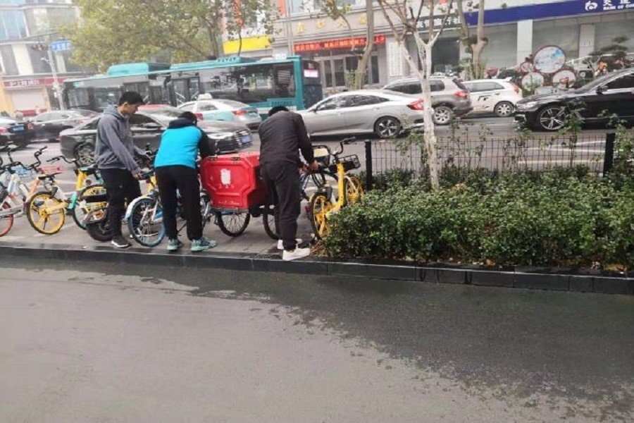 考虑到中心校区附近交通状况复杂且单车分布状况不一,本次活动以集体行动的形式开展。在团支书刘博的带领下,同学们以沿行道路为单位,向清洁工人送上慰问并开展清洁工作调查。在沿行过程中,同学们也将遇到的垃圾收集起来以减轻环卫工人的负担,更为冬天的济南增添了一丝温暖;与此同时,同学们也对道路两旁的单车进行了整理,并引导骑行人士规范停车,避免空间占用以及安全隐患。