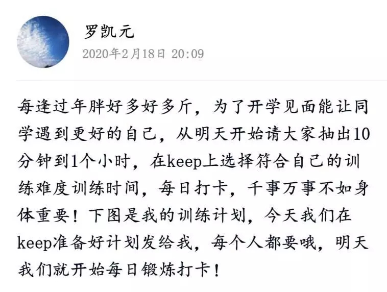 首先,牛雨雨讲述了此次会议的目的,主要是对这一学期各班委工作计划的探讨与制定以及班级未来发展的规划。随后,各个班委轮流讲述了自己这一学期的工作计划。其中,牛雨雨提到疫情期间要在学院指导下,带领班委积极开展各项工作。在线上学习期间,各项班级事务也要照常进行。学习委员王璨提出要积极提醒与督促同学们按时上课,按时交作业,做好同学们的出勤统计,调动提高同学们在线学习的积极性。文体委员罗凯元提出在家上课期间,制定keep每日运动打卡计划,督促同学们在家坚持每天打卡锻炼身体,在返校之时,每位同学以更加健康的体魄和更好的精神状态迎接校园生活。心理委员赵晓晗提出,在家上课期间,心理状态同样重要,要积极与同学进行沟通联系,以防疫情期间同学们出现不良的心理状况。