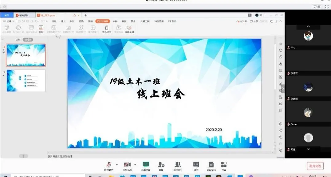 为迎接新学期的到来,3月2日,Beat365官方网站2019级土木一班开展第一次线上班会,班级全体成员参加会议。