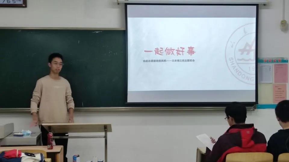会议伊始,李骏程向同学们介绍了“手拉手”志愿服务活动的具体意义和活动要求。他详细讲述了此活动的历史情况及今年与往年活动的不同之处,并对新情况下活动特征进行了分析。他指出,本次大赛学院对班级的活动的要求更高了,这是对班级凝聚力的一次检验。随后,李骏程正式宣布了土水海三班朝旭志愿服务队成立。全场响起了热烈的掌声。