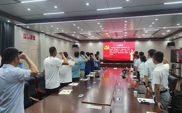 考察结束后,所有人员来到水库党建活动基地,听取了水库历年党史活动开展情况及感人事迹讲解介绍。 在水库服务处会议室,双方支部党员代表开展座谈交流,一起重温入党誓词。