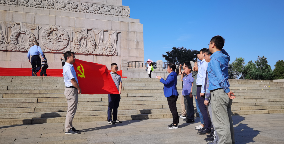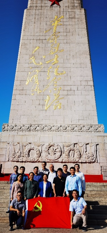 在革命烈士纪念塔前,全体党员教师驻足列队,在水工党支部书记于翠松带领下,面向党旗,重温入党誓词。宣誓声激情高昂,一词一句,无不体现着中国共产党人的担当和责任;宣誓声声声入耳,深深篆刻在共产党人的骨子里;寥寥数语,凝结着历代中国共产党人的崇高信仰。