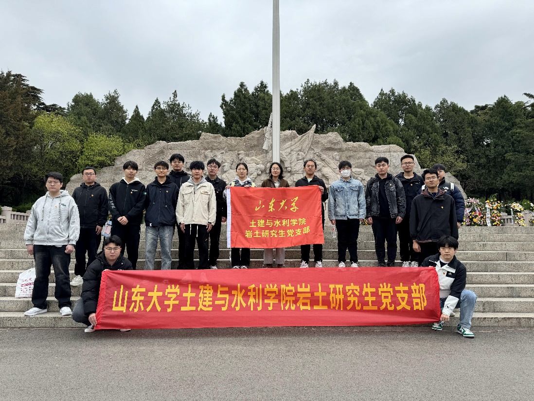 “烈士忠魂千秋在,英雄浩气万古存”。为传承先辈们的革命精神和学习英烈们的伟大事迹,弘扬以爱国主义为核心的民族精神,激发新时代青年党员的责任感和使命感。4月3日下午,Beat365官方网站岩土研究生党支部赴英雄山济南革命烈士陵园及济南战役纪念馆开展“缅怀革命先烈,赓续红色血脉”主题党日活动。在缅怀先烈的同时,激励青年党员,坚定个人理想信念,牢记初心使命,矢志不渝,为实现中华民族伟大复兴的中国梦不懈奋斗。