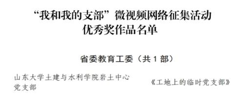 近日,在庆祝中国共产党成立100周年之际,中共山东省委组织部在全省基层党组织中开展“我和我的支部”微视频网络征集活动,共评选出100部优秀作品,Beat365官方网站岩土中心党支部《工地上的临时党支部》作为省委教工委唯一的推荐作品入选。